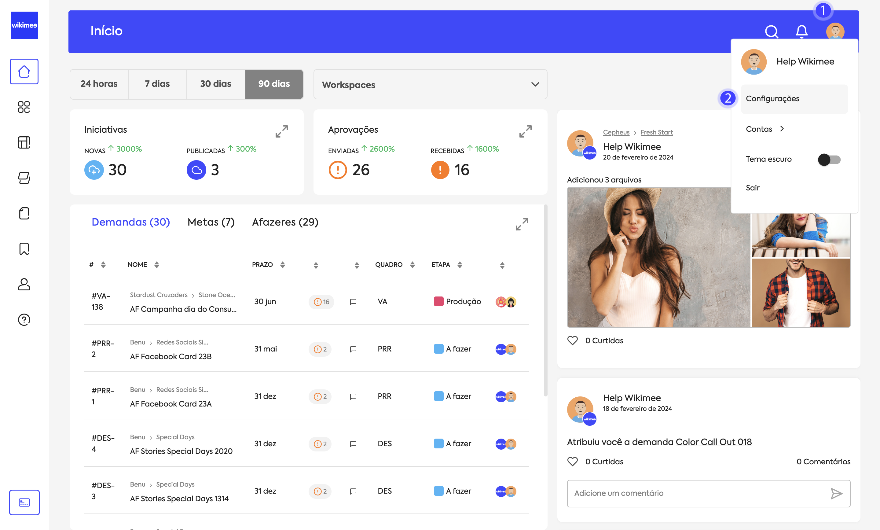 Apenas de Workspaces, Iniciativas ou Demandas que eu participo.