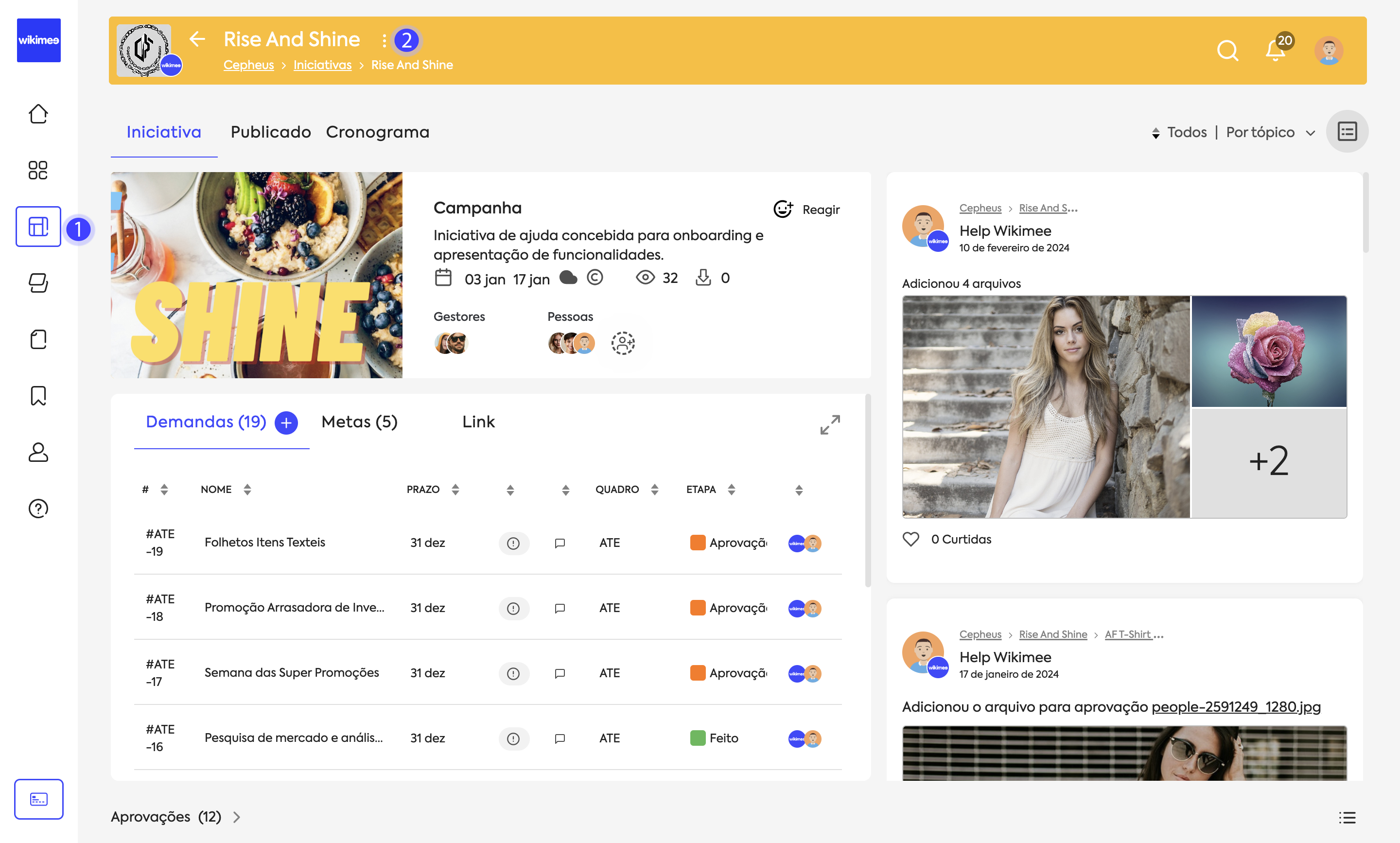 | Acesse Iniciativas em sua barra lateral e selecione a iniciativa. | |