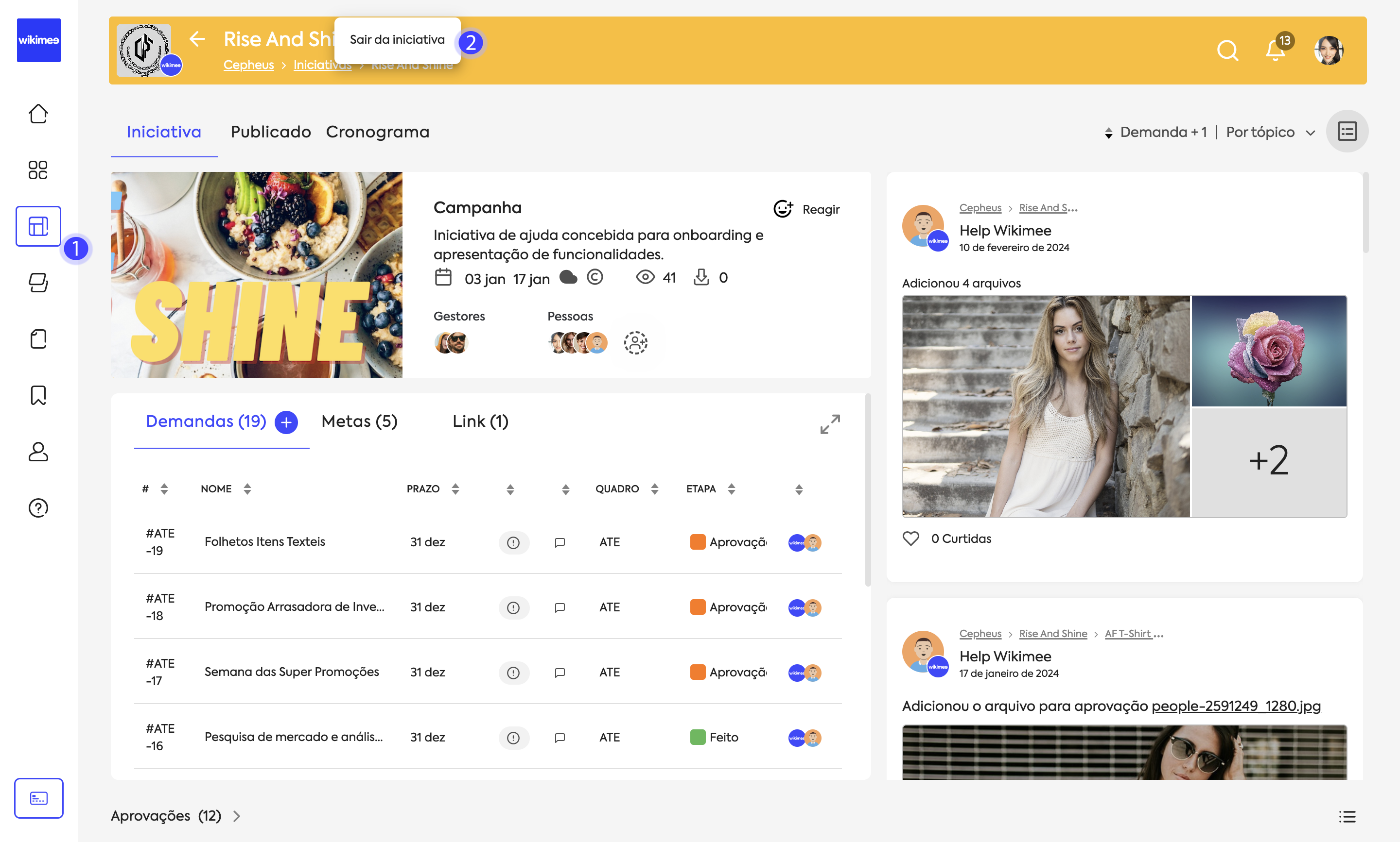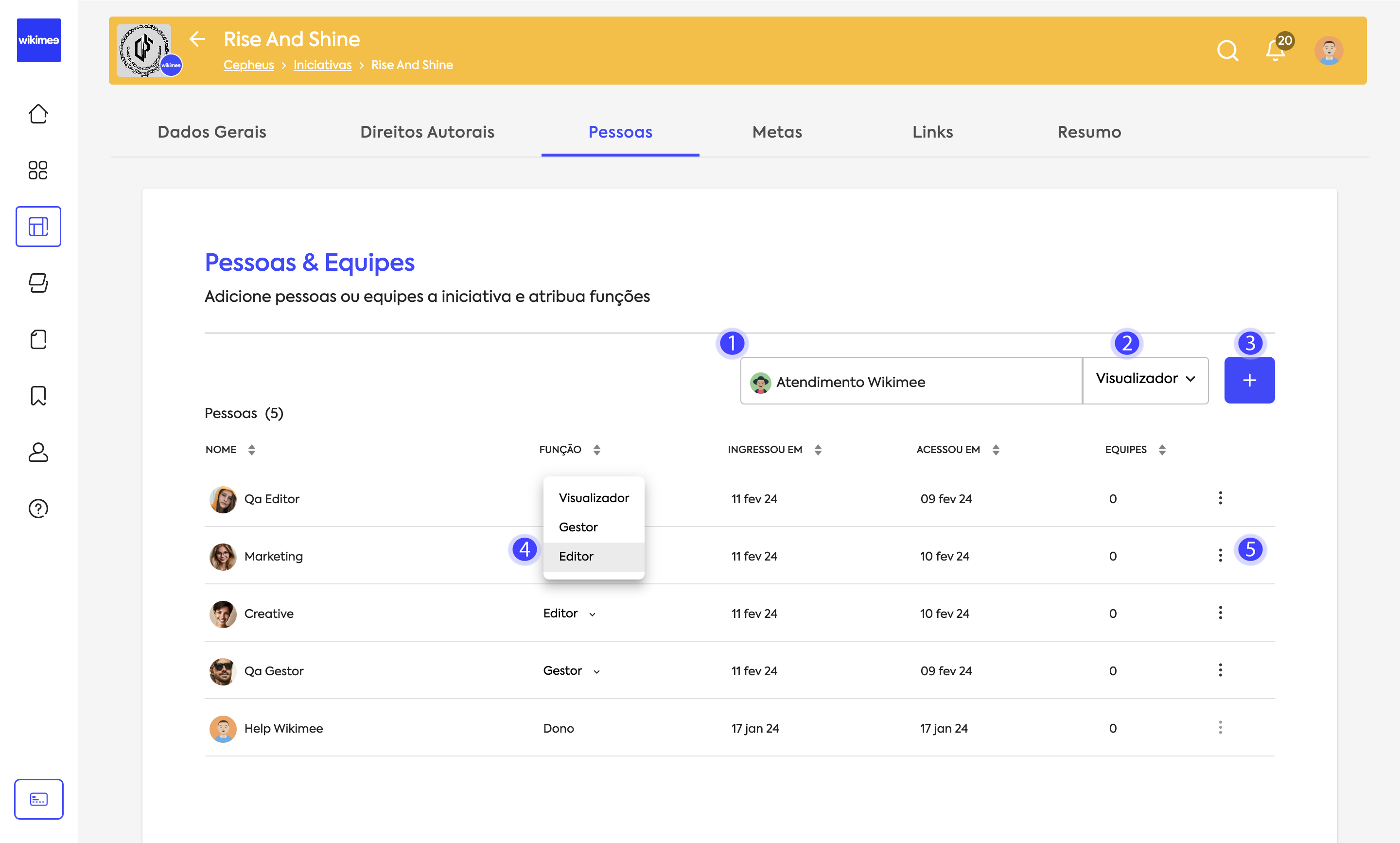 Edite permissões de acesso e adicione ou remova pessoas da iniciativa em Pessoas: