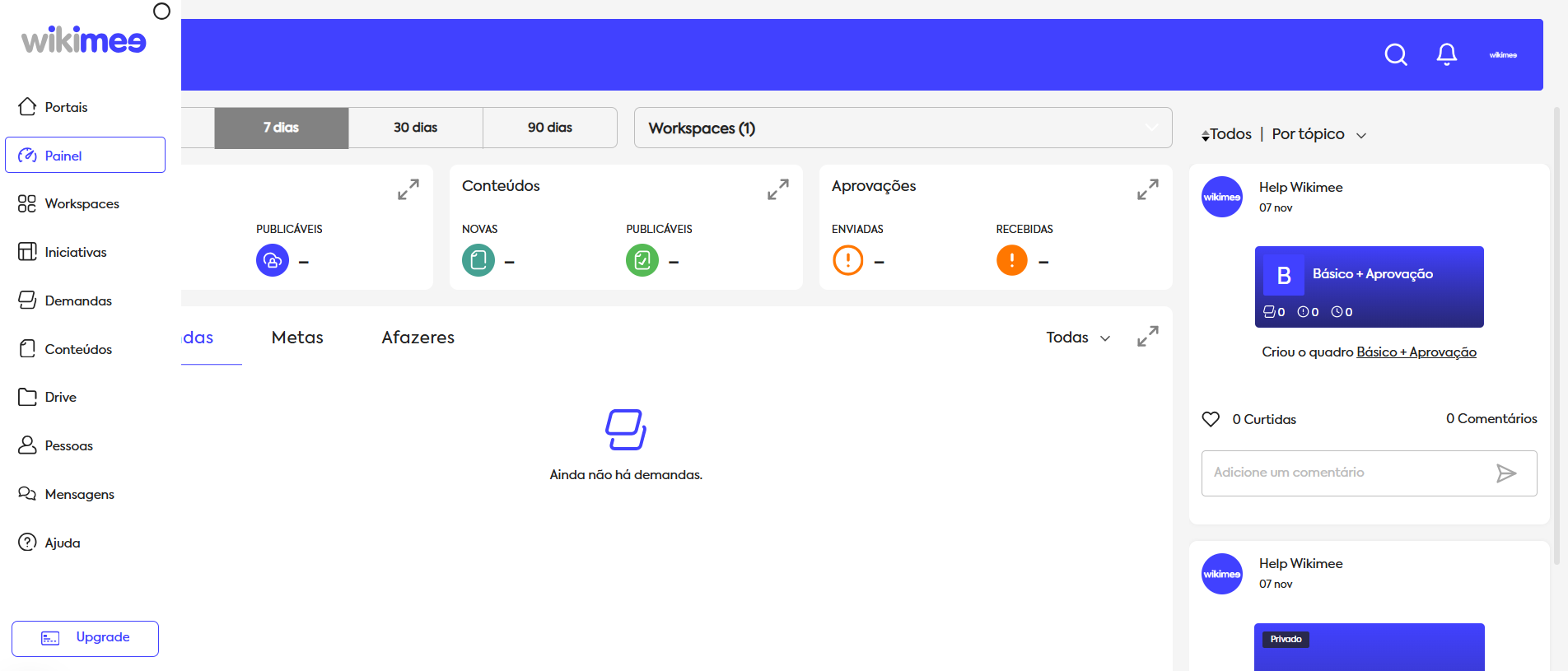 Na sua conta Wikimee, clique no botão Upgrade, localizado na parte inferior da barra de navegação, à esquerda da página.