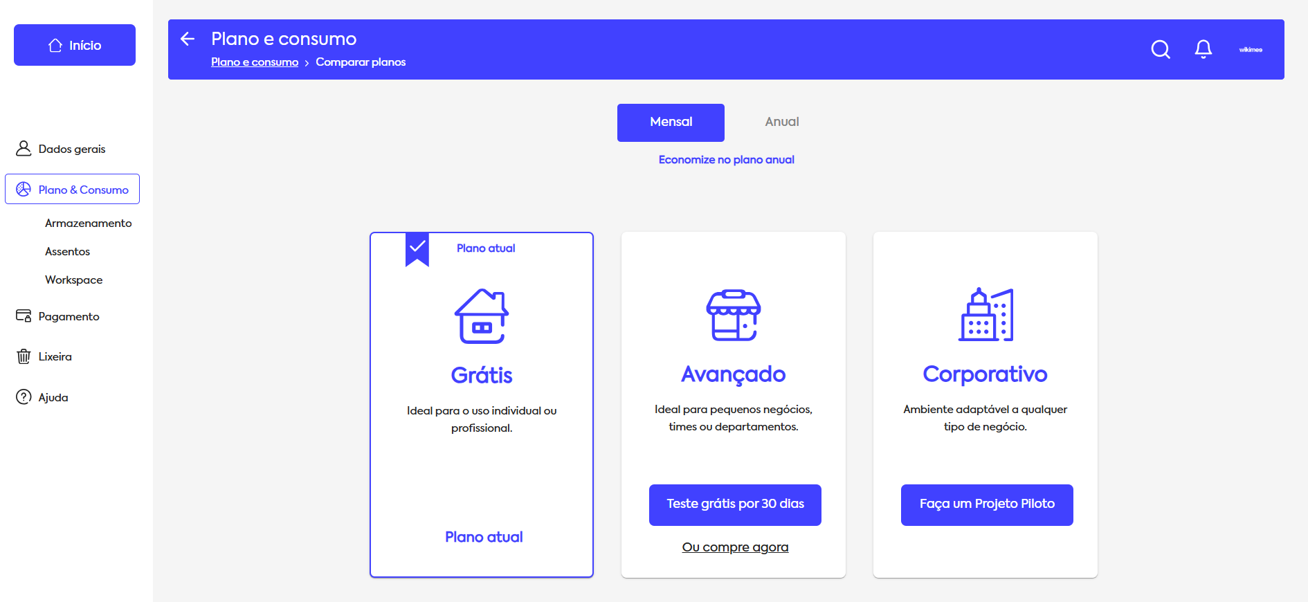 Veja a seguir como realizar o upgrade de seu plano atual para um plano com mais recursos disponíveis