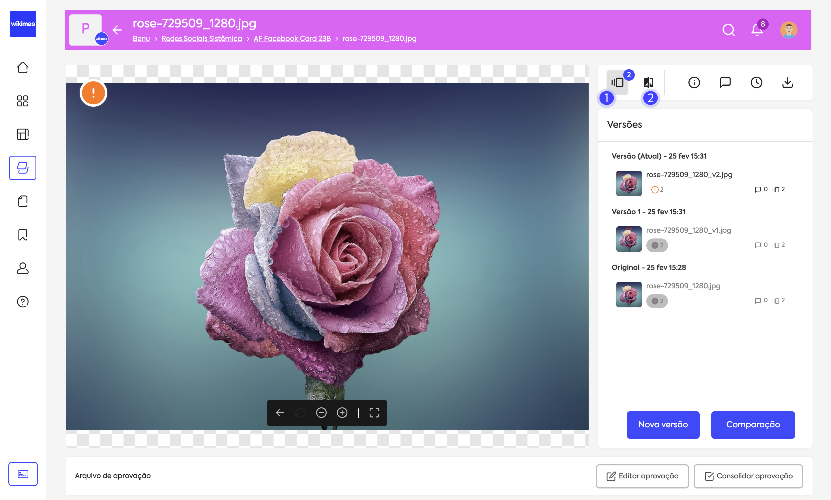 Realize o controle de versão de arquivos em aprovação com o componente de versionamento disponível em suas demandas. Assim você poderá rastrear em um só lugar as alterações realizadas assegurando melhores resultados para cada entrega.