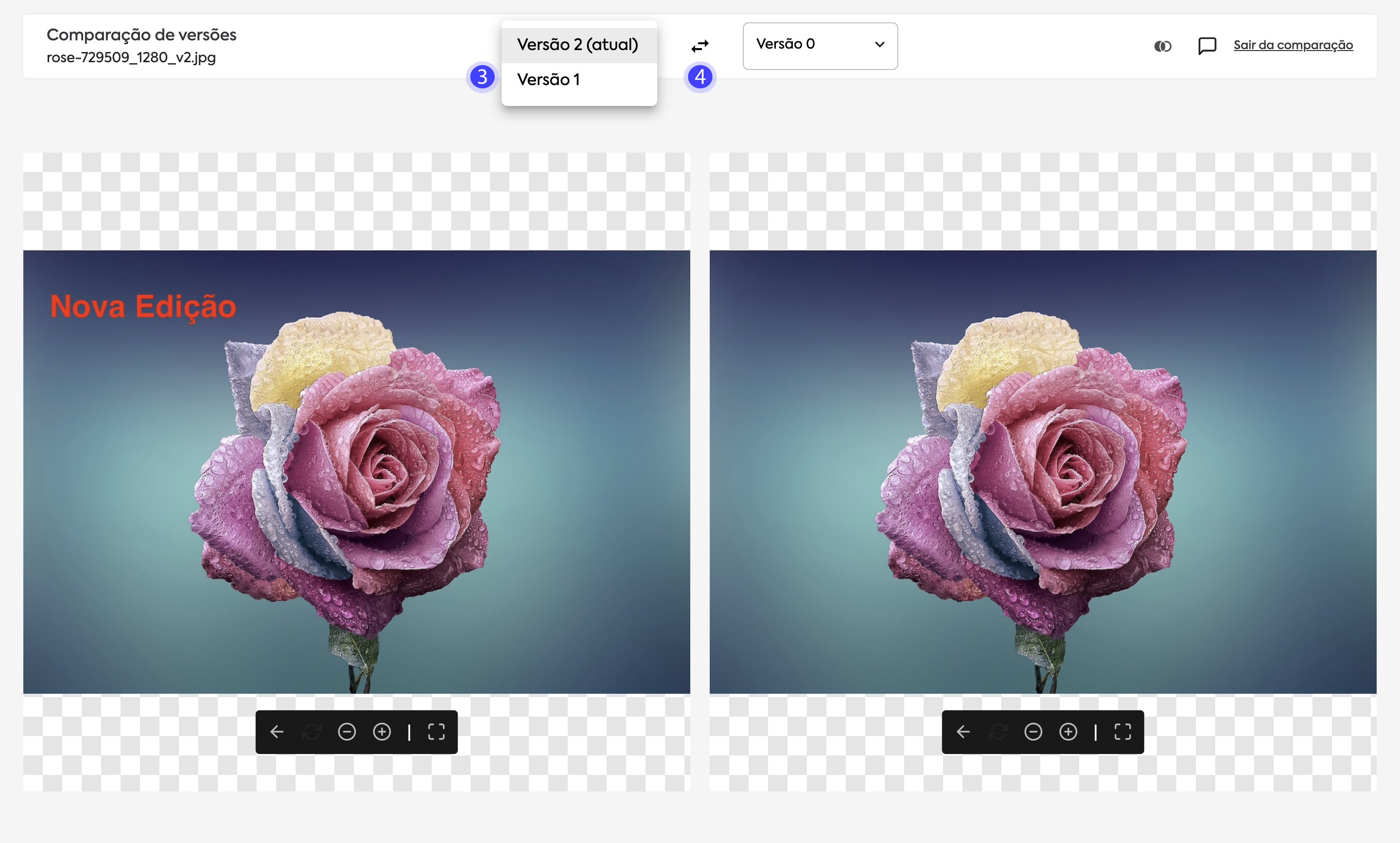 Veja como alterar a versão de seu arquivo em aprovação, e compare as alterações realizadas utilizando os recursos de comparação de arquivos