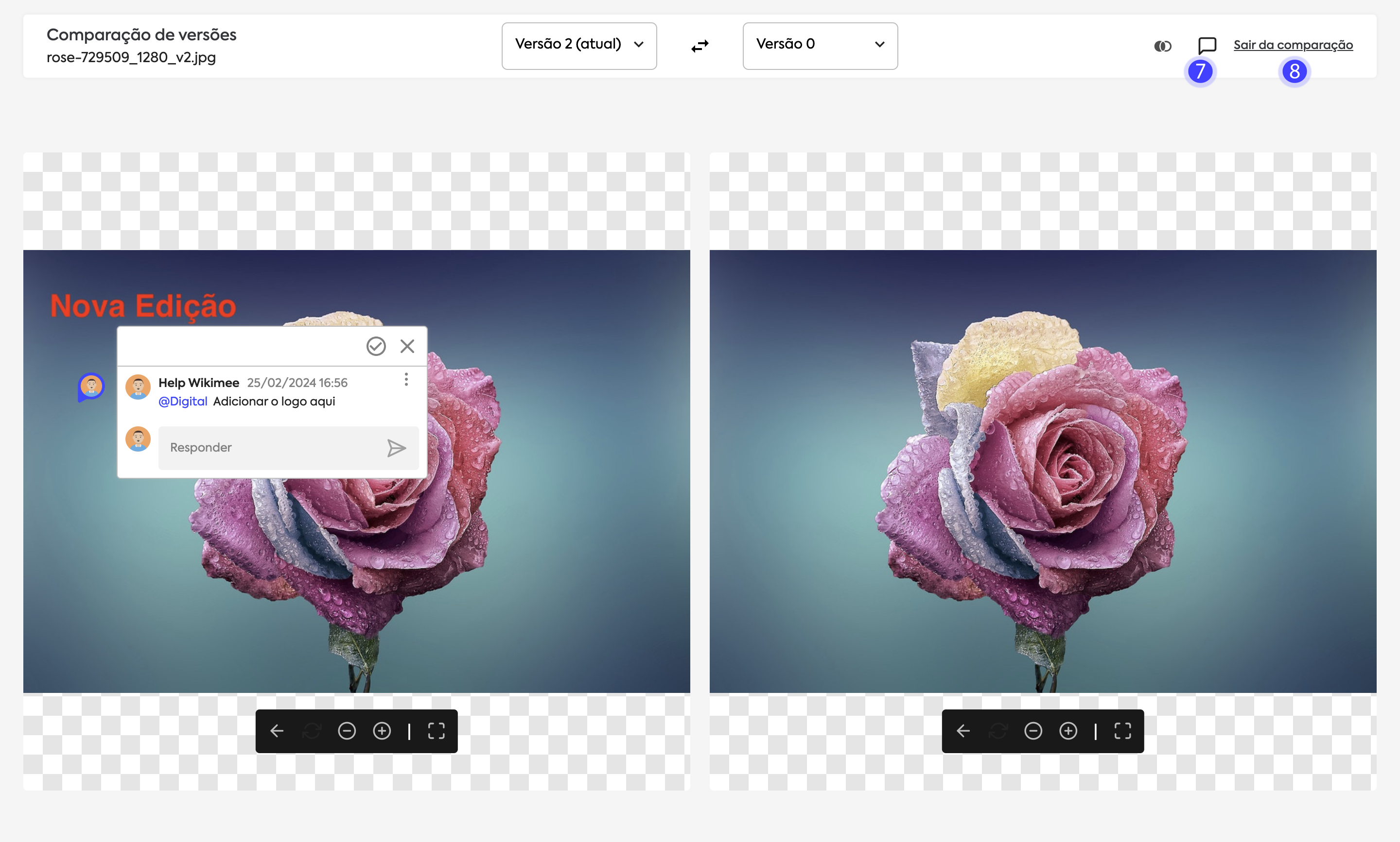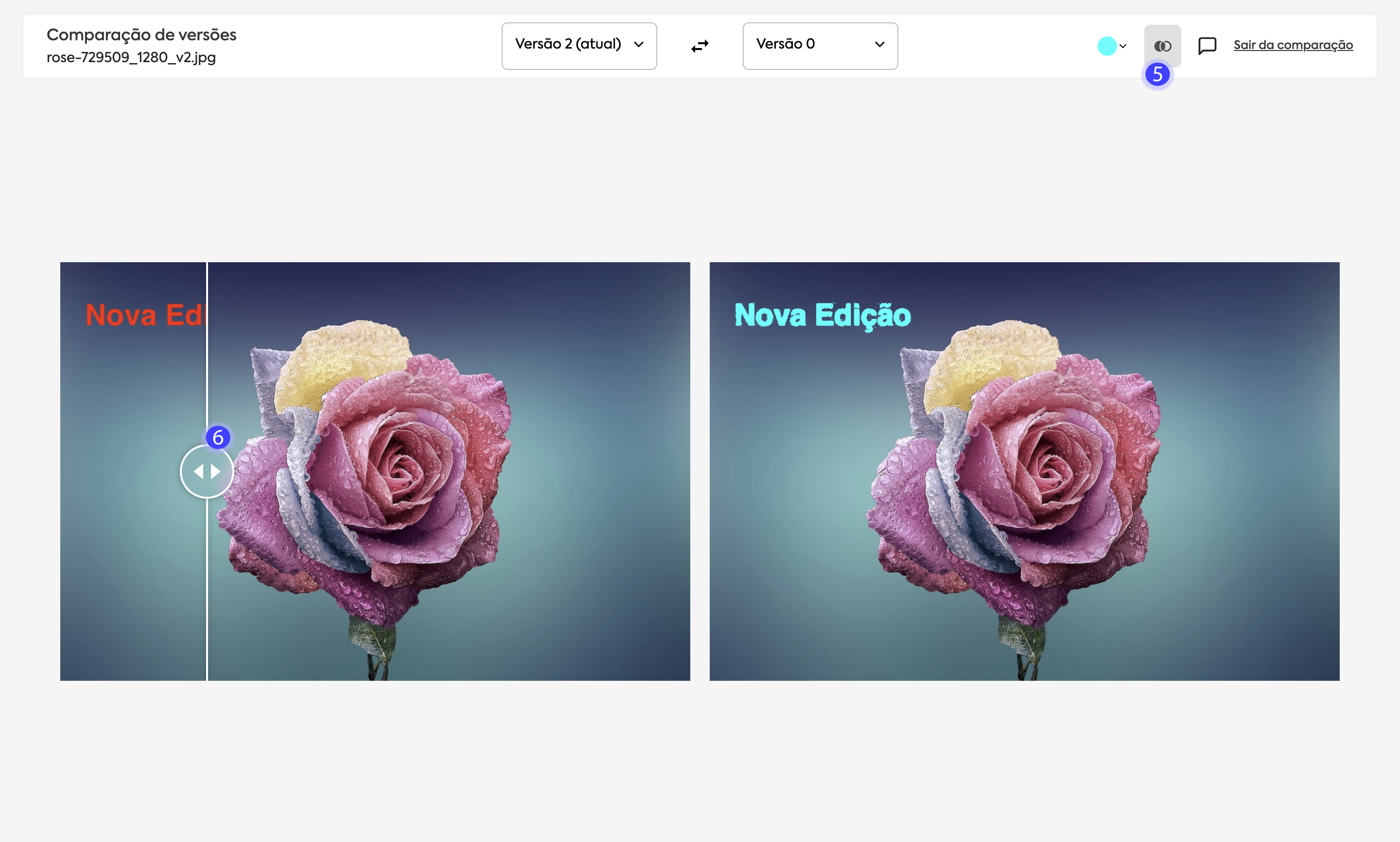 | Utilize a barra de comparação e desloque-a lateralmente para visualizar a diferença entre as versões. |