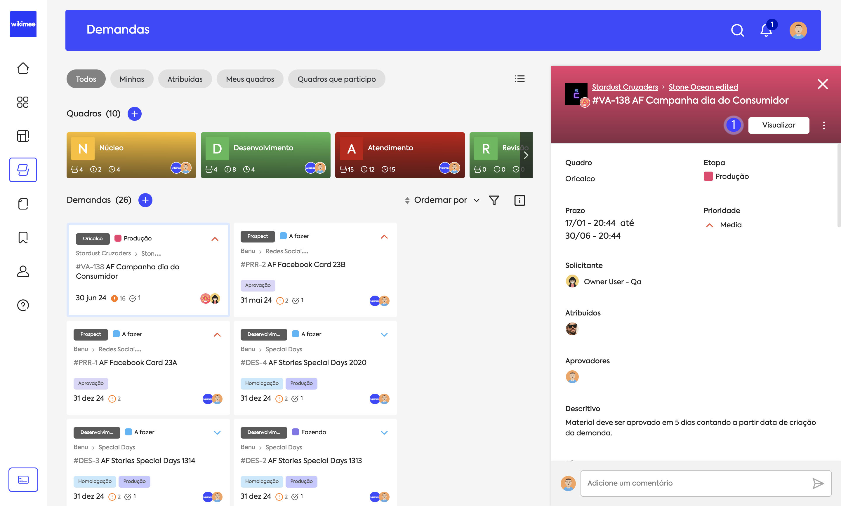Acesse a visualização em tela cheia de sua demanda com um duplo clique sobre o card da demanda. Ou se preferir: