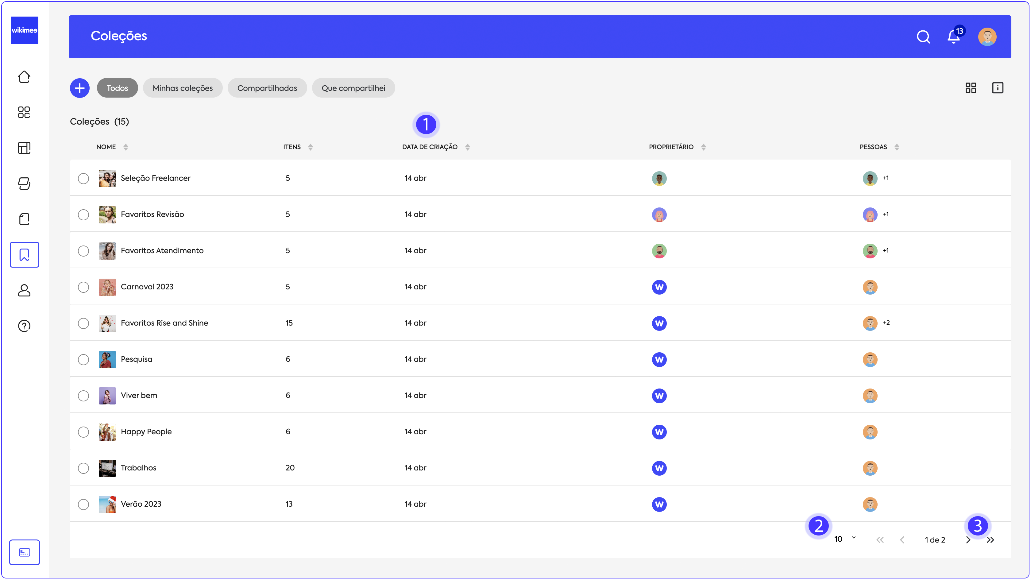 2 Utilize os botões de paginação para limitar a quantidade de arquivos por página.