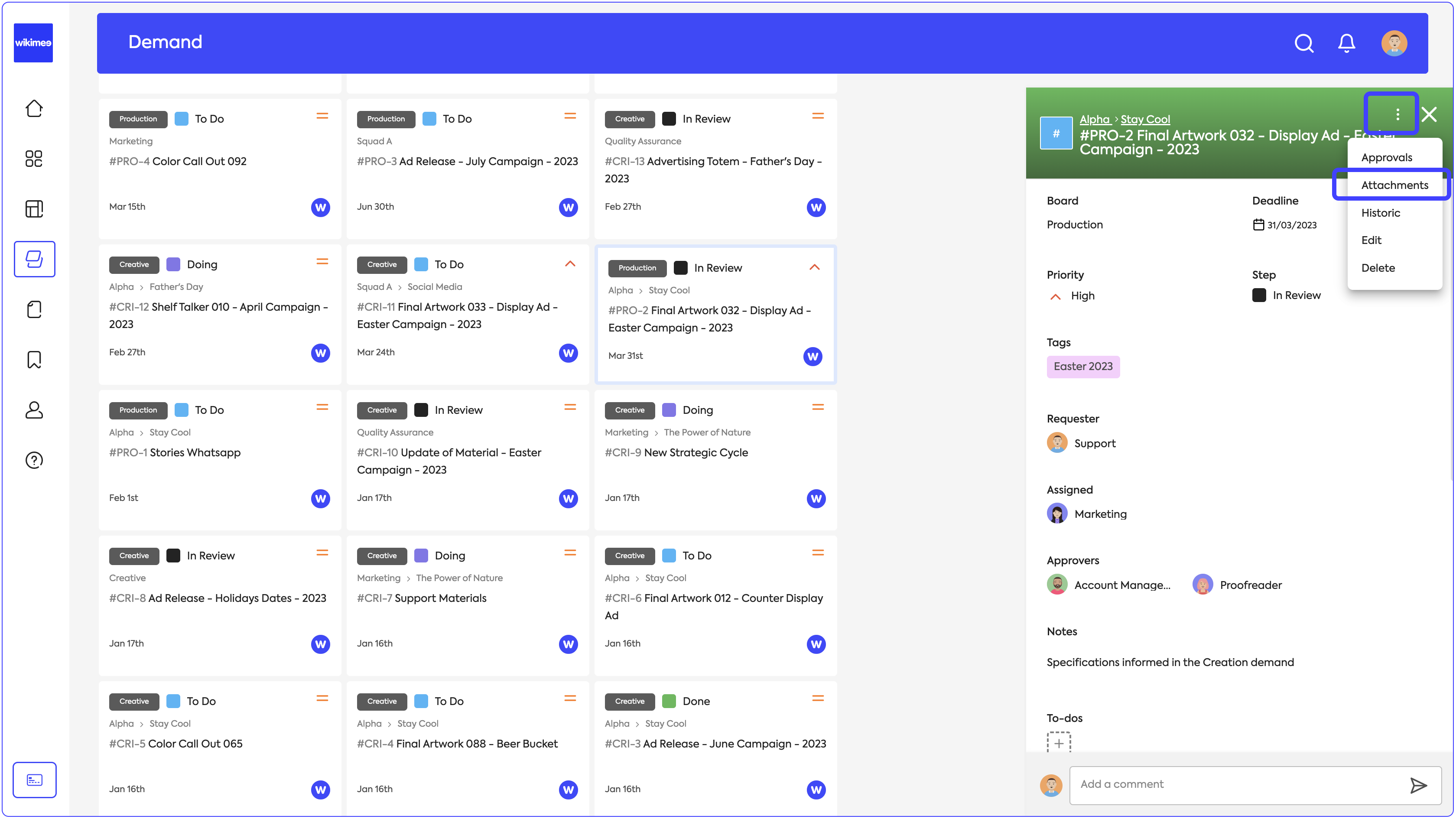 You can use attachments to include reference files, informative documents in the demand or even include files and documents that may enter your approval process at any time.