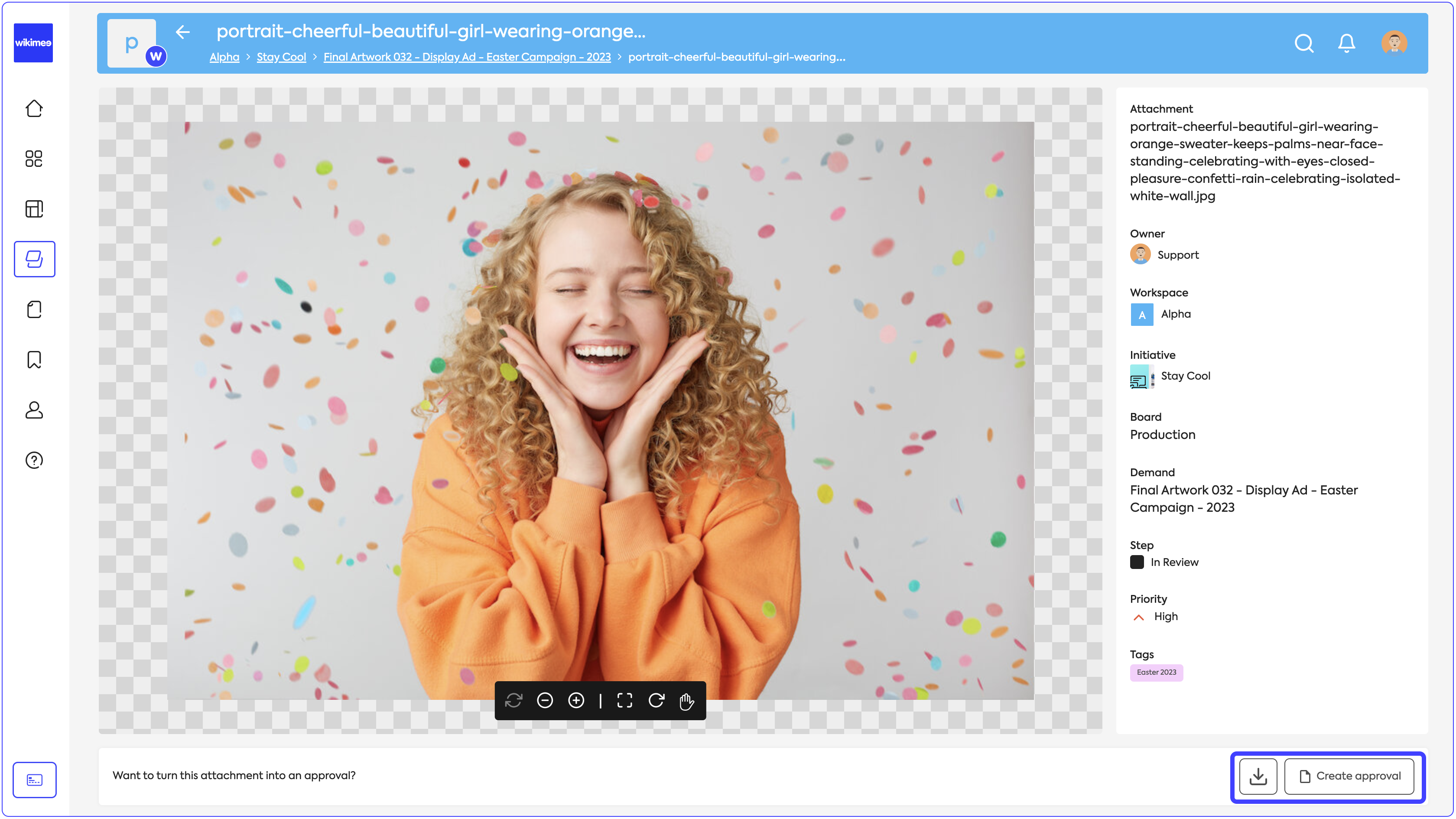 • At the bottom of the preview, on your right, there are buttons to download the file or add it to a new approval.