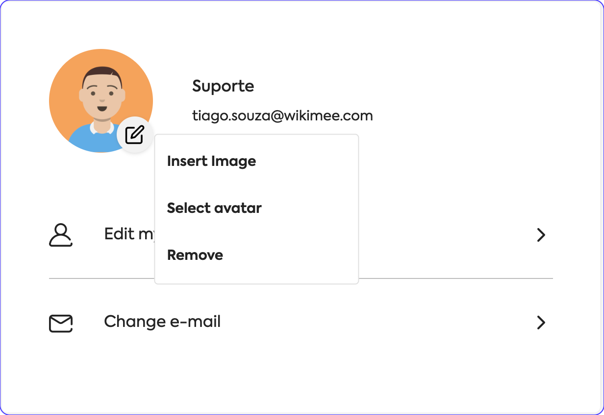- Click on Select avatar to choose a pre-defined profile picture from Wikimee.