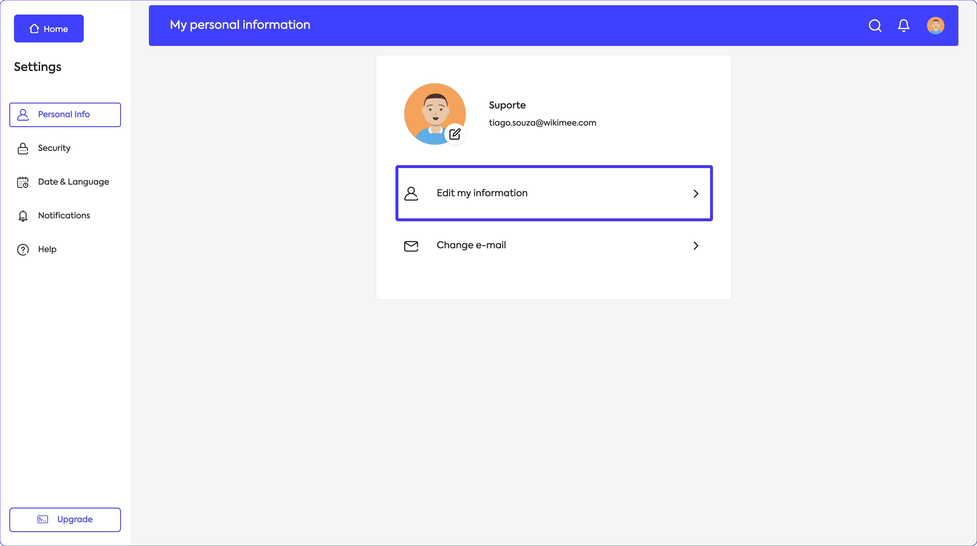Access the Personal Info section to edit your registered information on Wikimee: