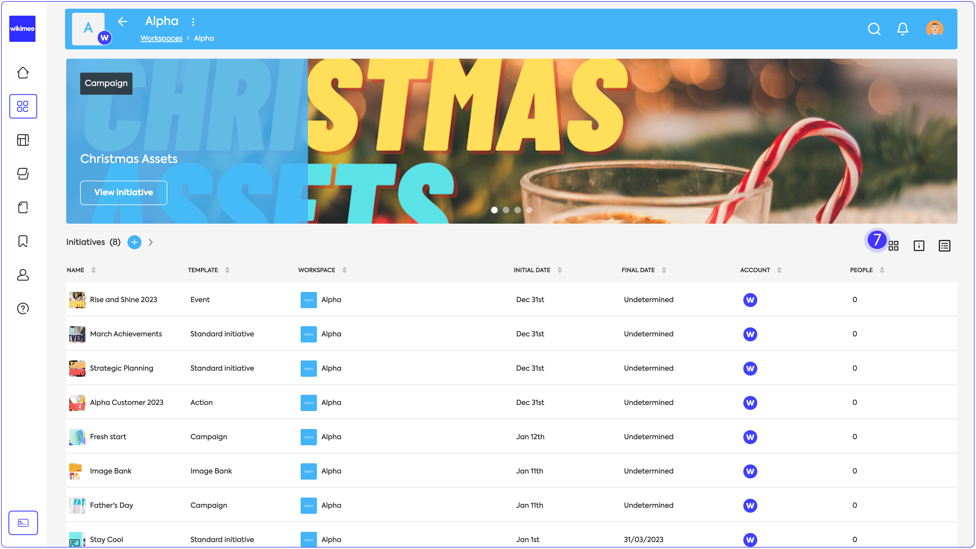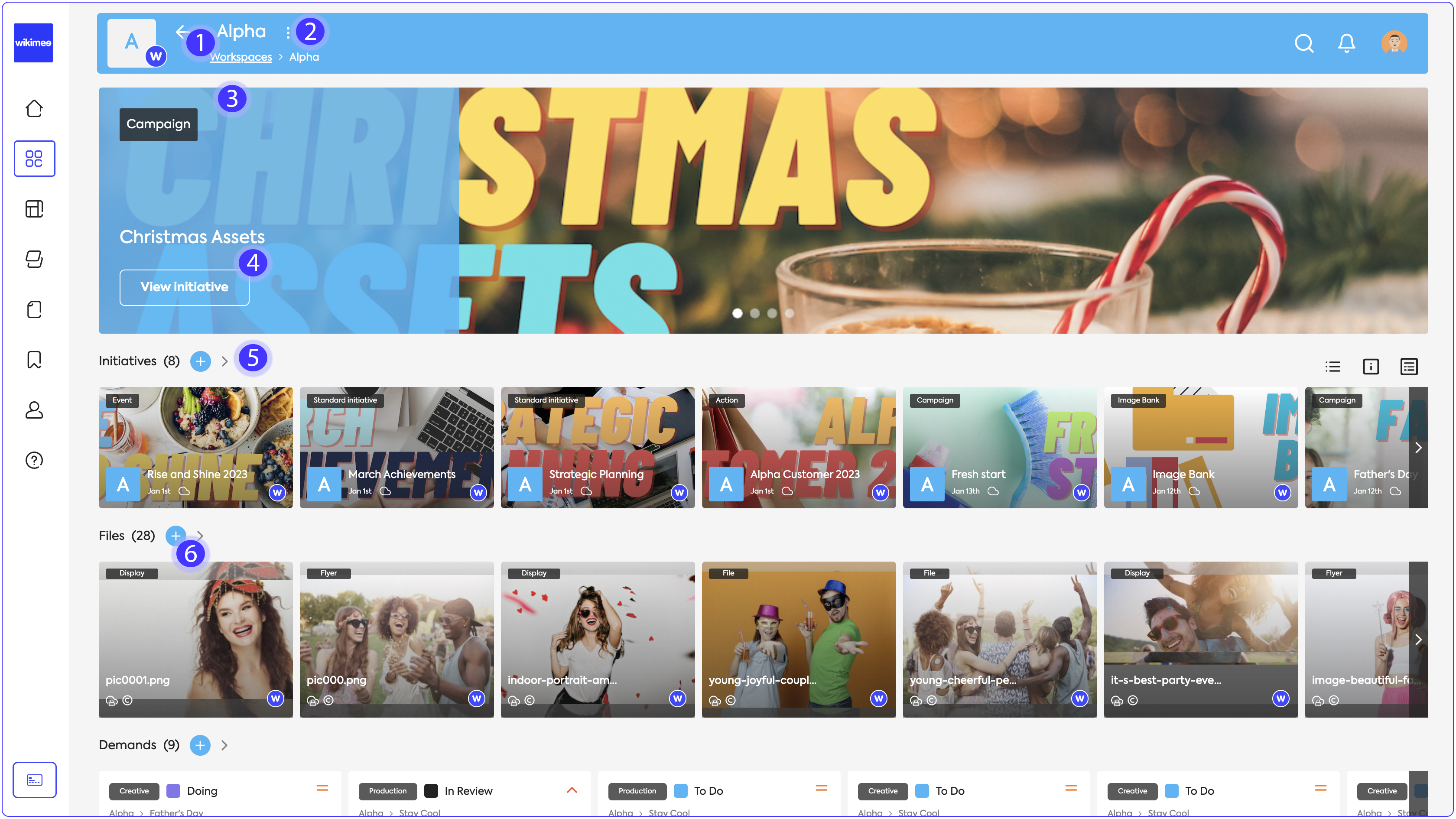Just below the banner, the Initiatives, Files, Demands, and finally, People and Teams of the workspace are displayed in the following order.