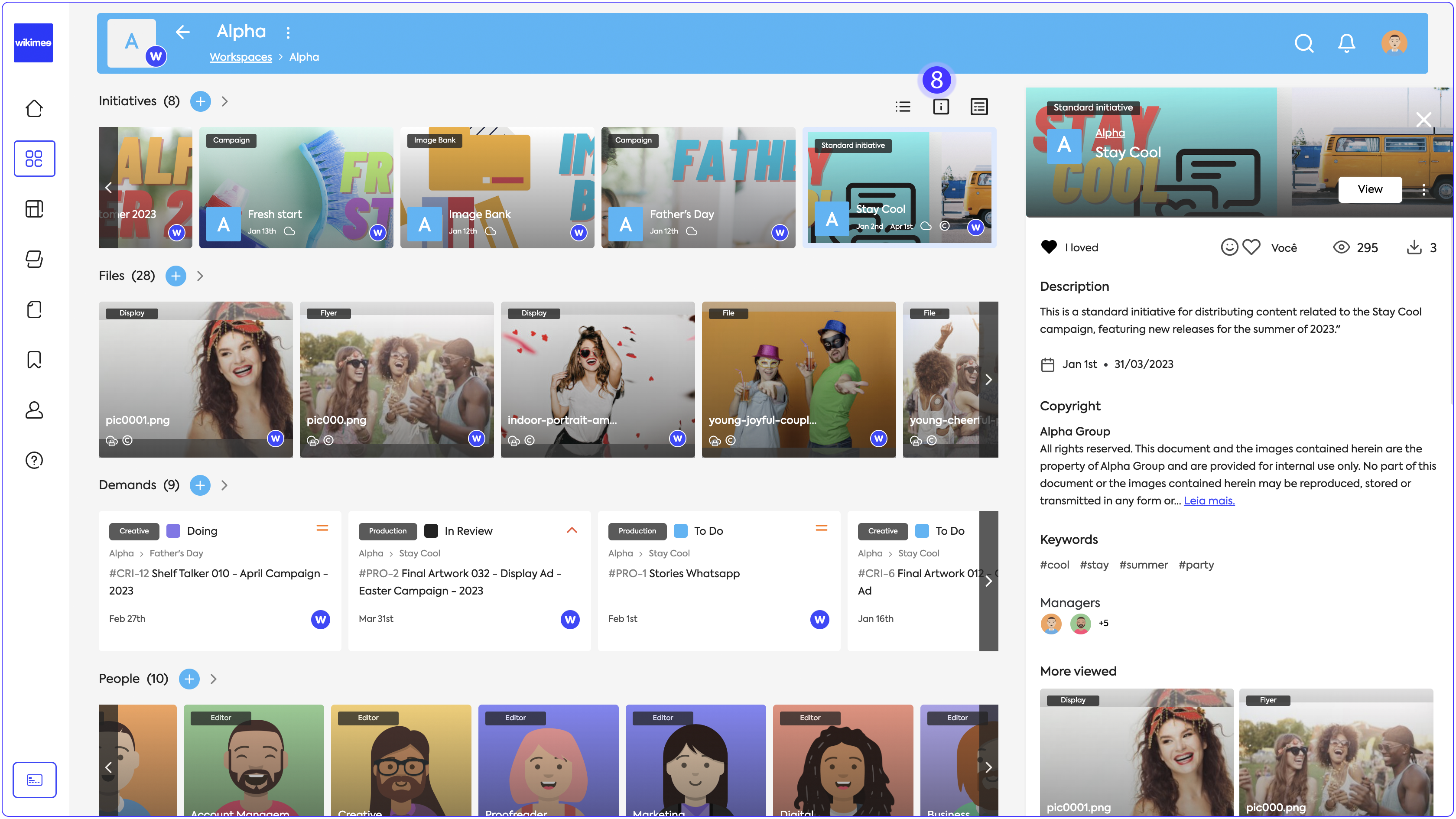 Discover in this article how to navigate, add files, initiatives, demands, people, and teams. Also, learn how to view key information in a workspace