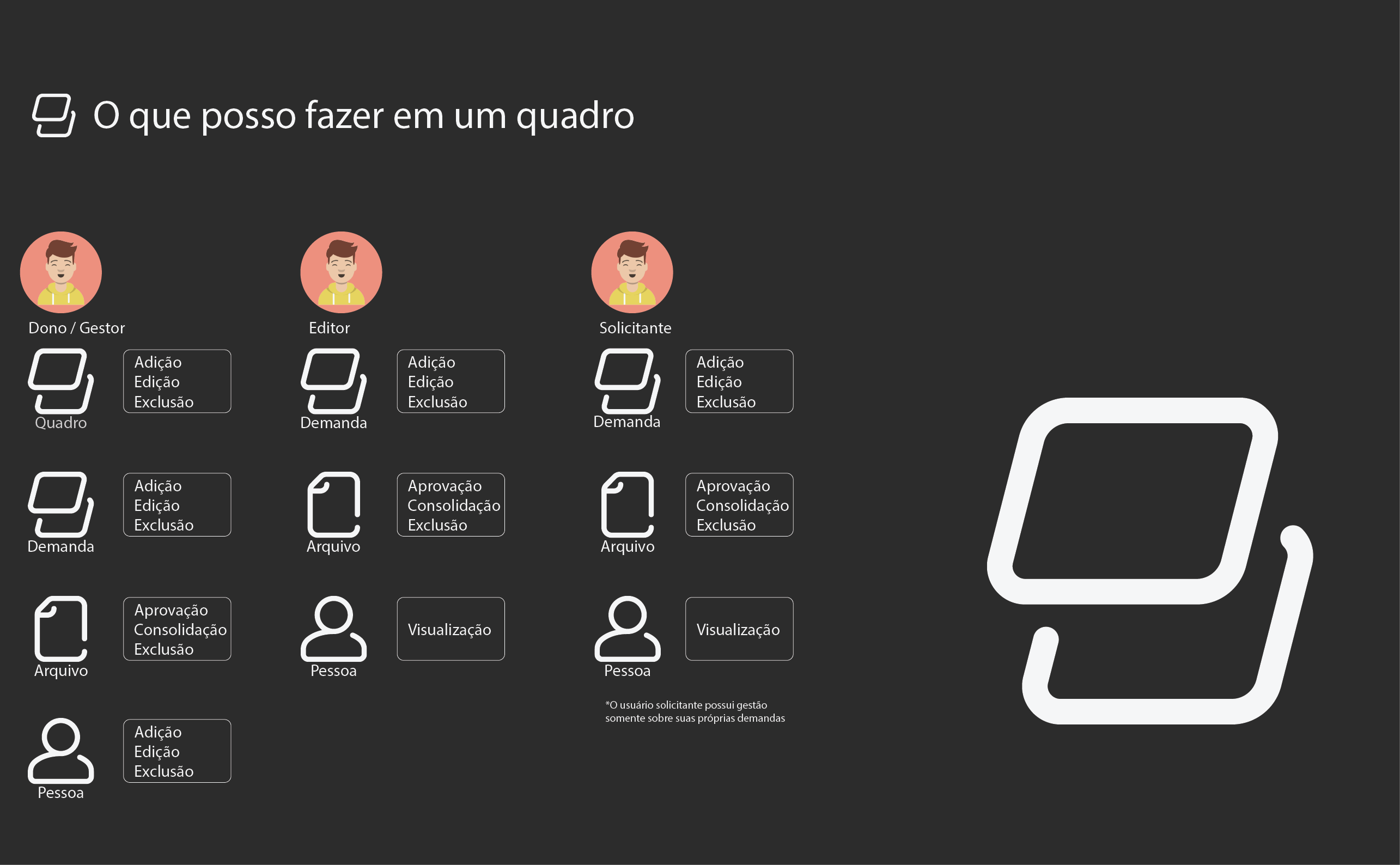 | Quadro | Dono / Gestor / Editor / Solicitante |