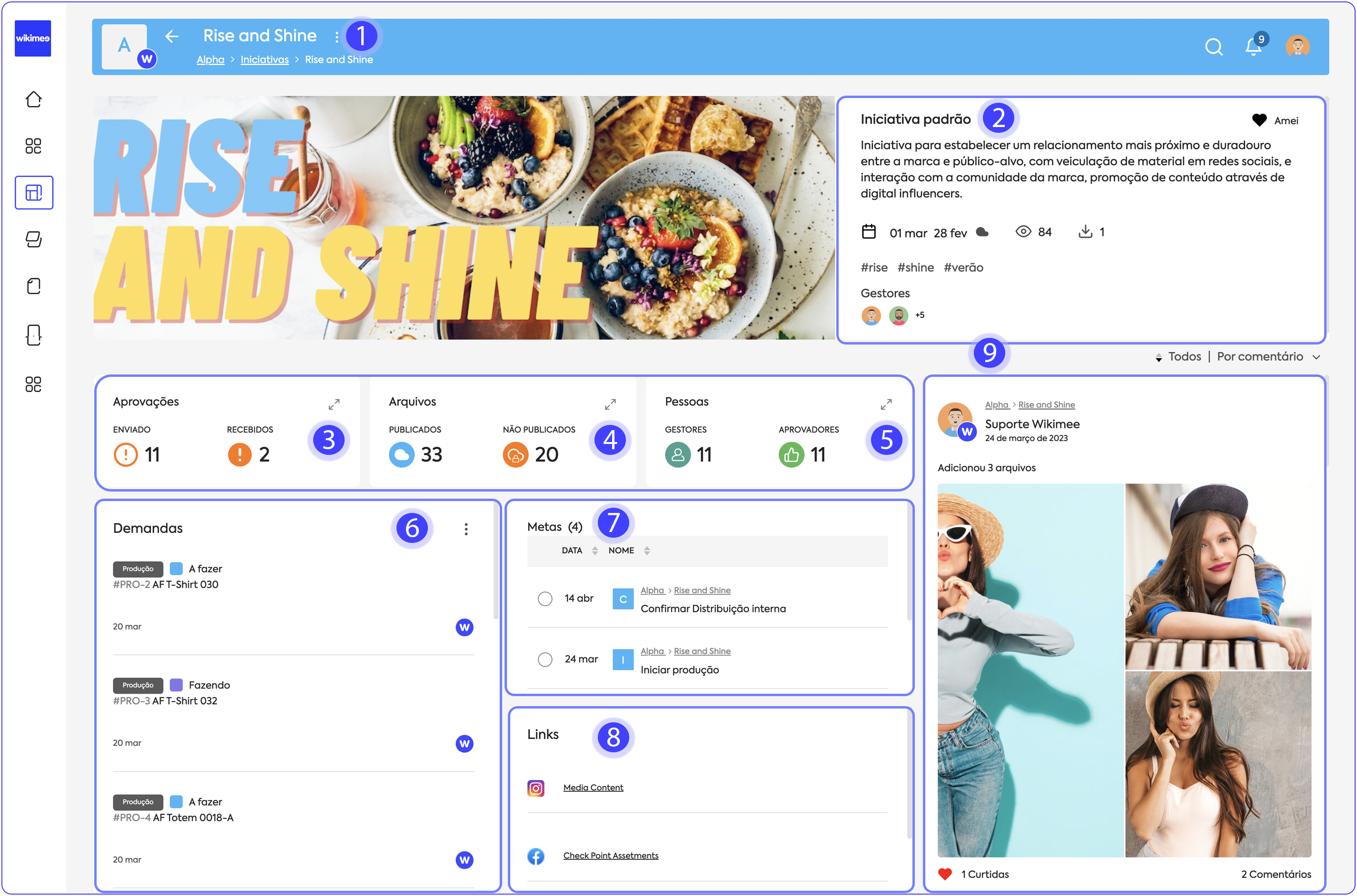 Iniciativas são ambientes de co-criação e distribuição de conteúdo, conectando em um mesmo contexto: demandas, pessoas e equipes, parceiros e clientes. Uma iniciativa pode ser: um projeto, uma campanha, um evento, uma ação ou um banco de imagens.