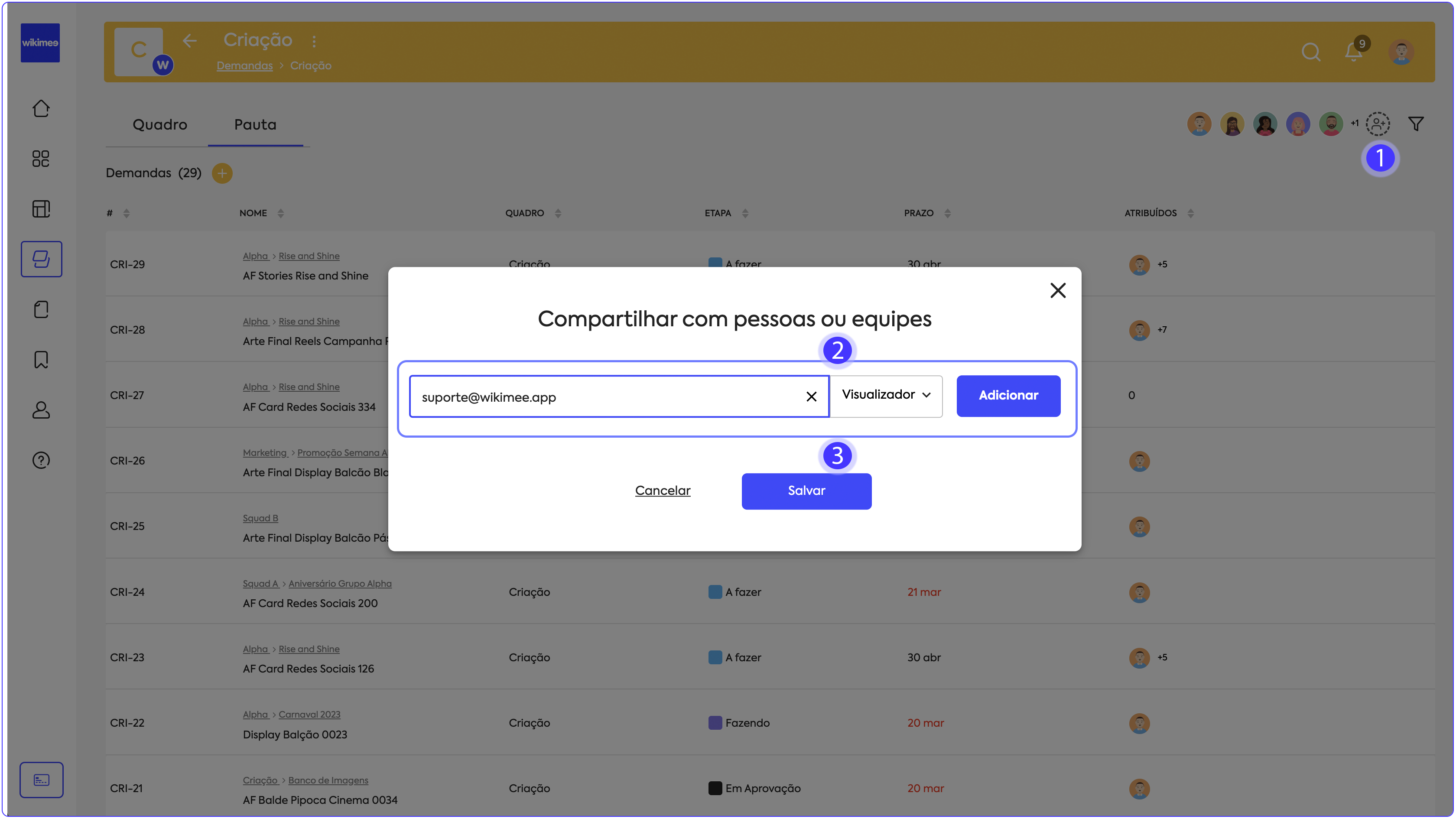 | Compartilhar o acesso ao quadro com pessoas e equipes. | |