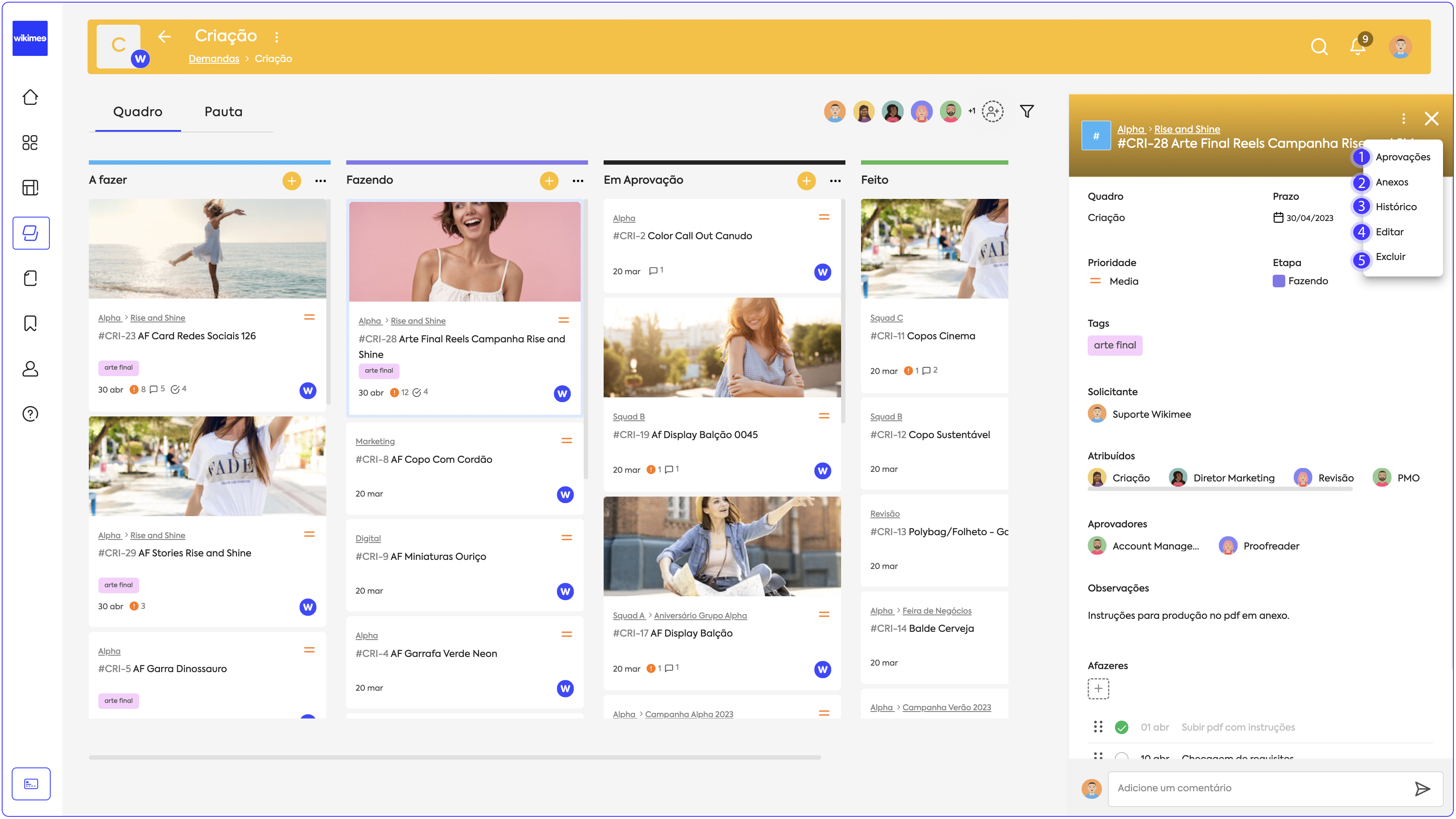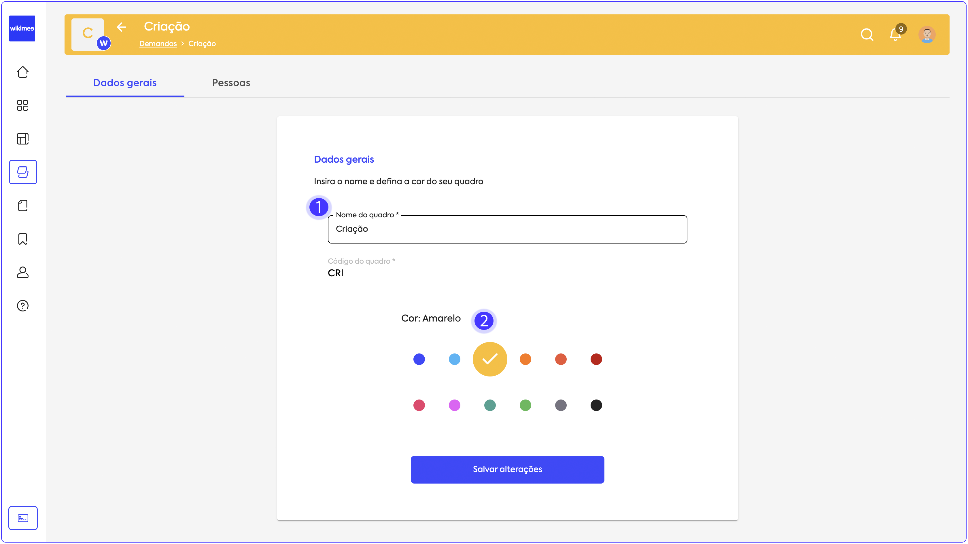 Dica: O acesso à edição dependerá do seu tipo de permissão atribuído no quadro.
