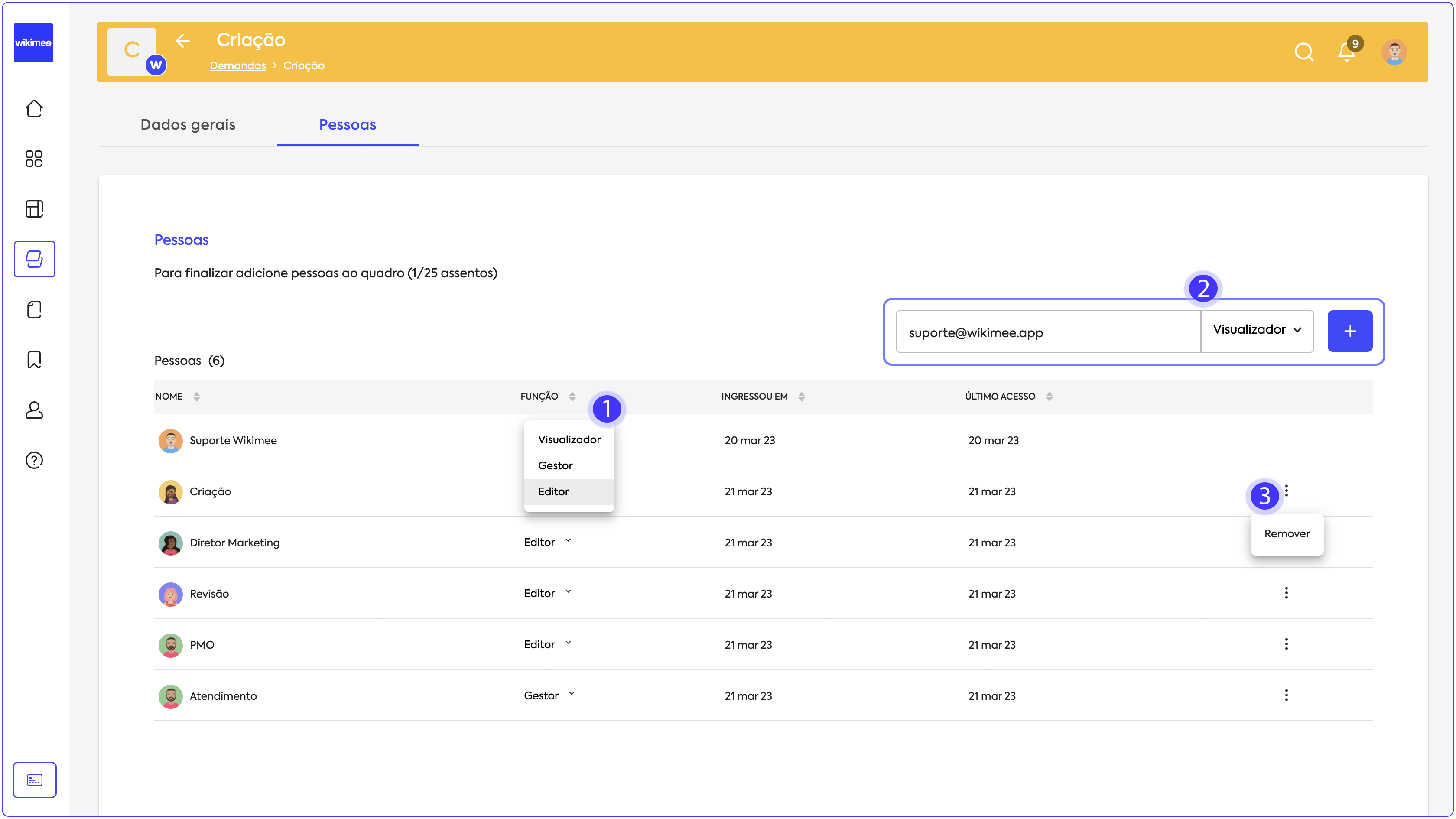 Edite o tipo de acesso e adicione ou remova pessoas em Pessoas: