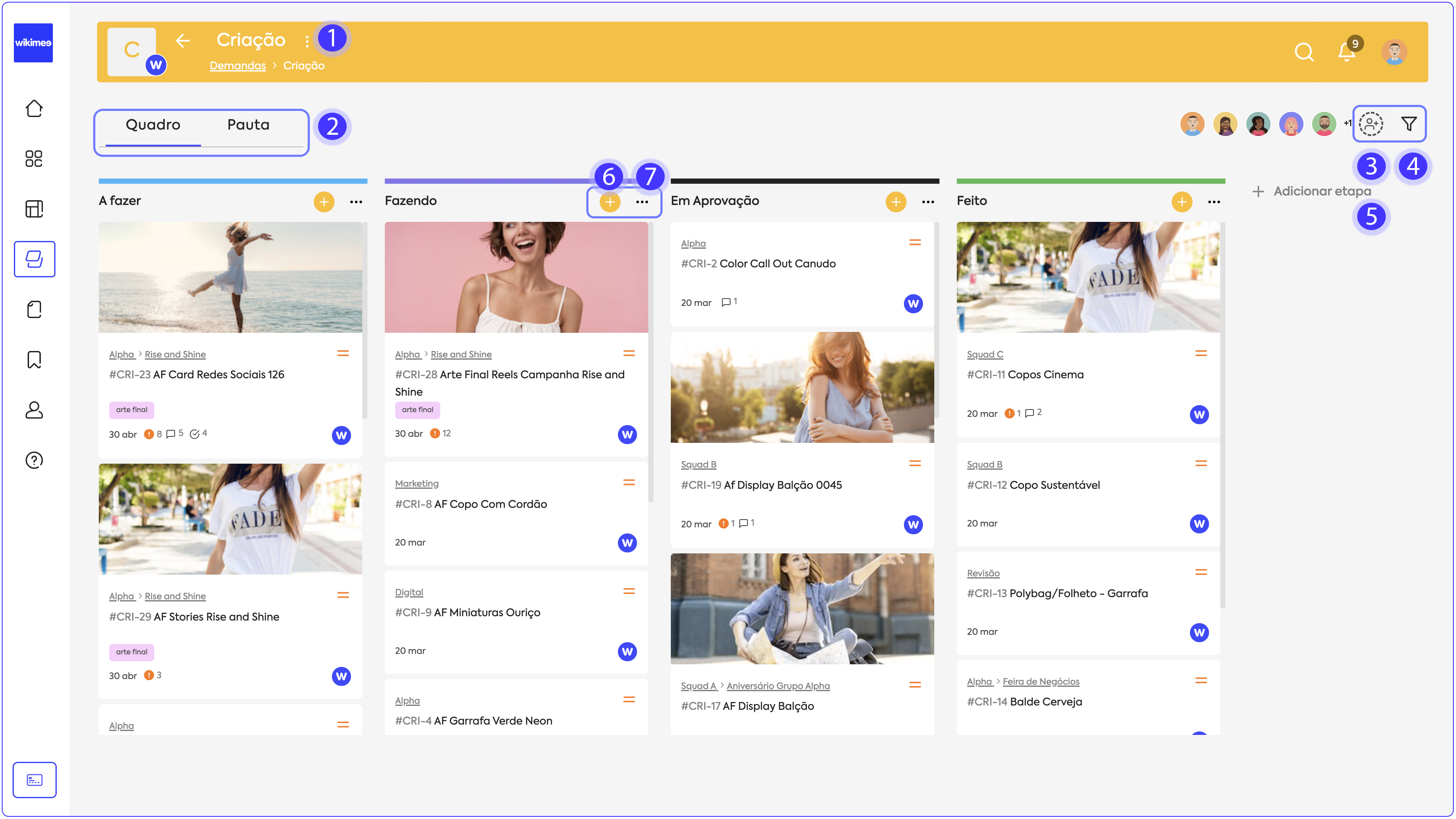 Dica: Você pode criar múltiplos quadros para seus diferentes fluxos de trabalho, distribuindo suas demandas entre os tipos de fluxos mais adequados.
