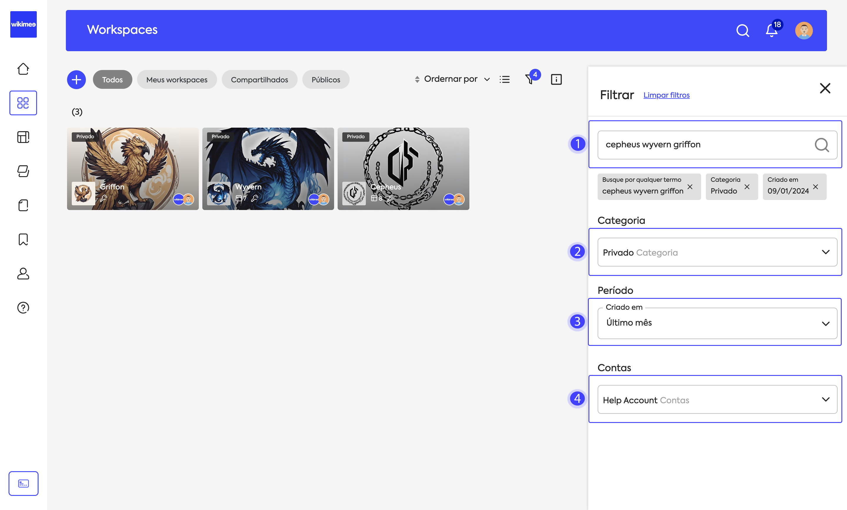 • Meus Workspaces - Visualize apenas aqueles criados por você.